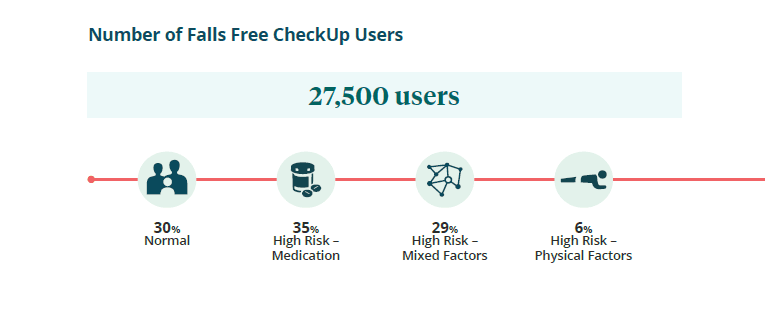 During FPAW 2024, 27,500 people completed the Falls Free® CheckUp. Of those users, 70% were at high risk for a fall, demostrating the need to continue raising awareness of falls risks and the interventions that can help address them.