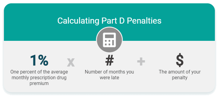| Medicare Part D Penalty | 1% of the national base beneficiary premium ($38.99 in 2026) for each month you delayed. It's added to your monthly Part D premium for as long as you have this coverage. |