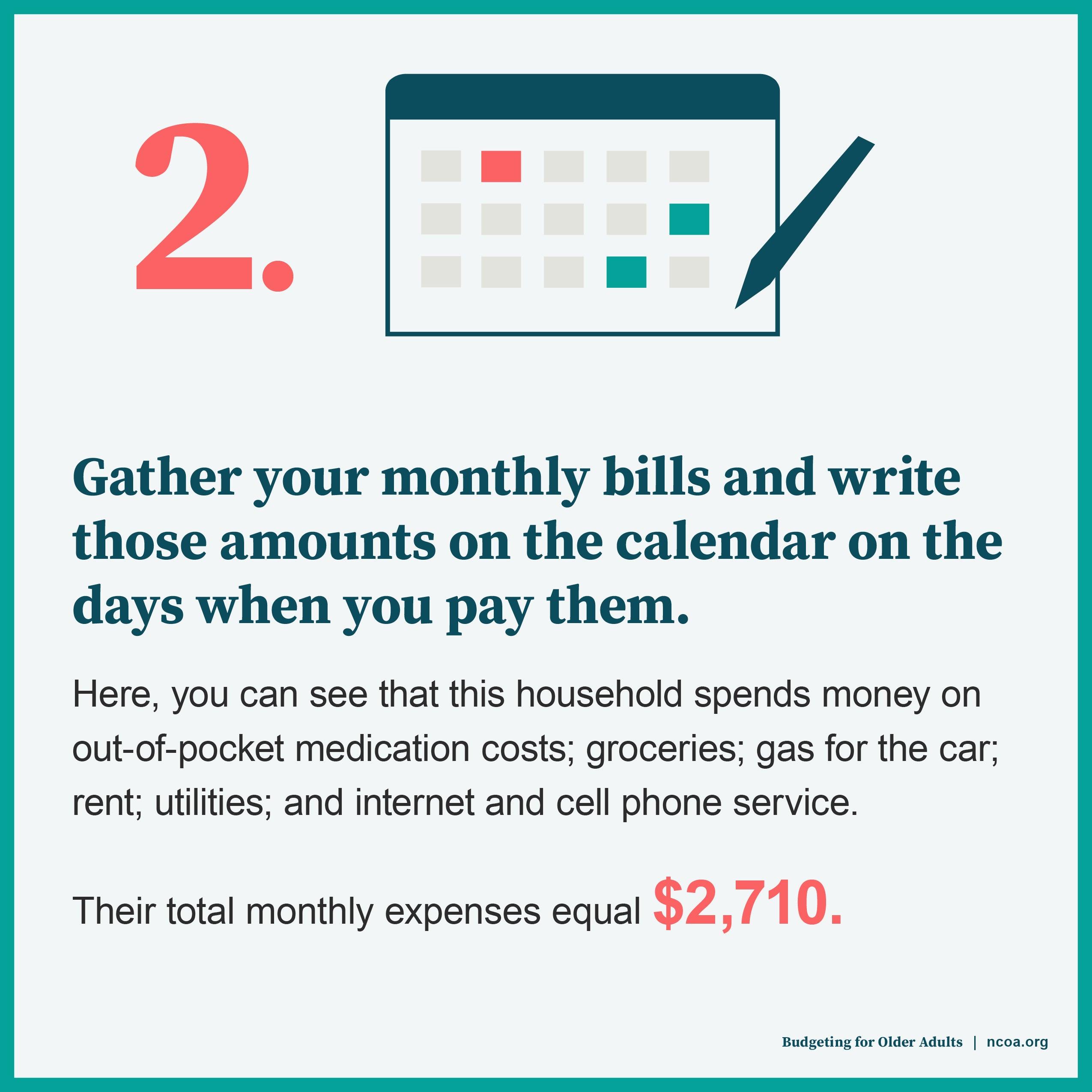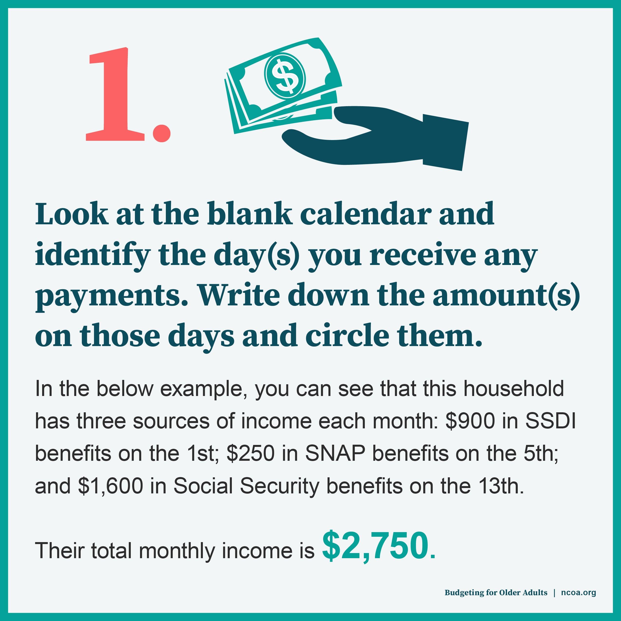 Now, write each of these things on your calendar (see NCOA's example below for a budget calendar you can download).